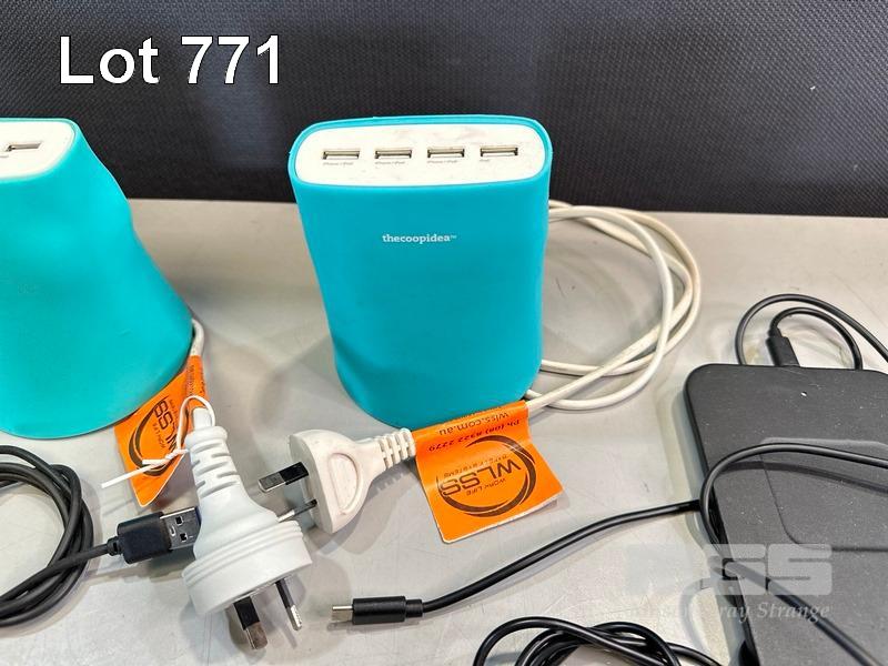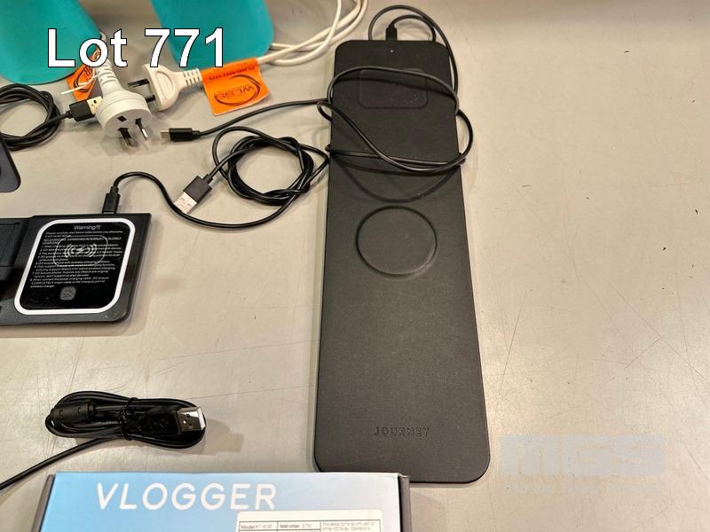 VLOGGER MINI TRIPOD STAND, J BURROWS USB WEBCAM, 3 x THECOOPIDEA JELLY 4-PORT USB CHARGING STATIONS, QTY ASST WIRELESS CHARGERS