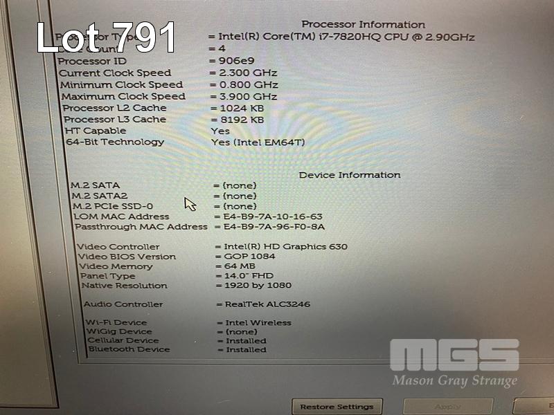 LAPTOP, DELL LATITUDE 5480, CORE i7 7820HQ (7TH GEN) @ 2.9GHz, 16GB DDR4 RAM, NO HDD, 14" WIDESCREEN (NO POWER SUPPLY) S/N:JH6SRQ2