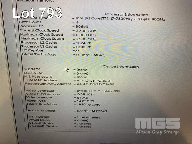LAPTOP, DELL LATITUDE 5480, CORE i7 7820HQ (7TH GEN) @ 2.9GHz, 16GB DDR4 RAM, NO HDD, 14" WIDESCREEN (NO POWER SUPPLY) (NOTE: MINOR DENT IN CASING, MARKS ON SCREEN) S/N:25PV3M2