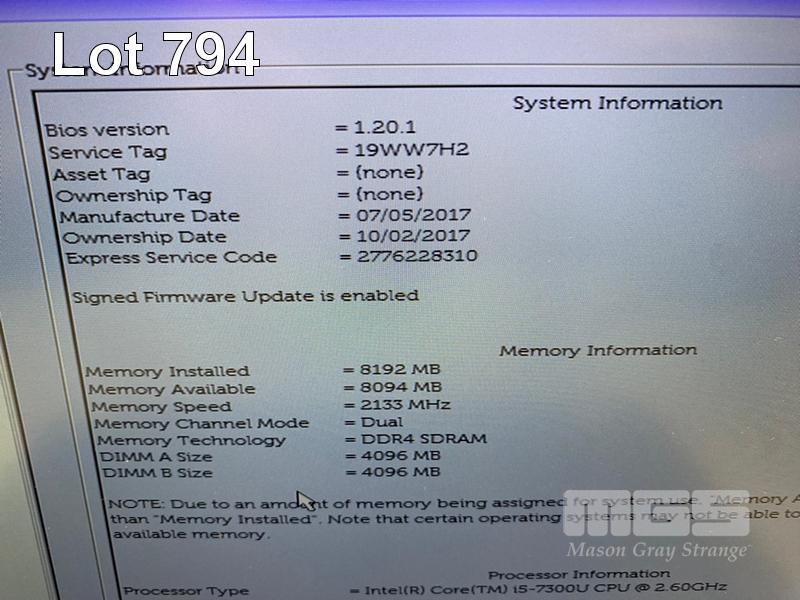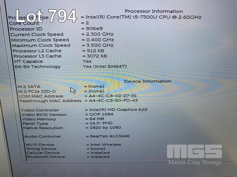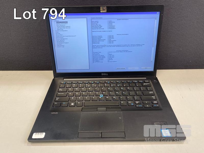 LAPTOP, DELL LATITUDE 7480, CORE i5 7300U (7TH GEN) @ 2.6GHz, 8GB DDR4 RAM, NO HDD, 14" WIDESCREEN (1920x1080) (NO POWER SUPPLY) (NOTE: BATTERY NOT HOLDING CHARGE) S/N:19WW7H2