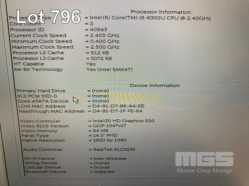 LAPTOP, DELL LATITUDE E7470, CORE i5 6300U (6TH GEN) @ 2.4GHz, 8GB DDR4 RAM, NO HDD, 14" WIDESCREEN (NO POWER SUPPLY) S/N:B41XWF2