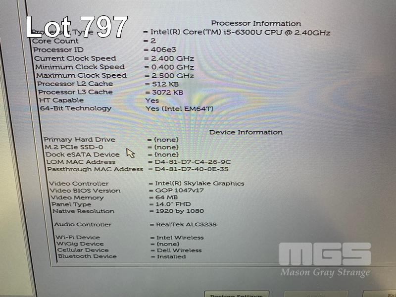 LAPTOP, DELL LATITUDE E7470, CORE i5 6300U (6TH GEN) @ 2.4GHz, 8GB DDR4 RAM, NO HDD, 14" WIDESCREEN (NO POWER SUPPLY) S/N:18163G2