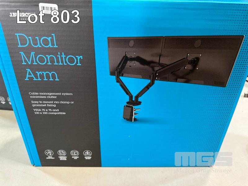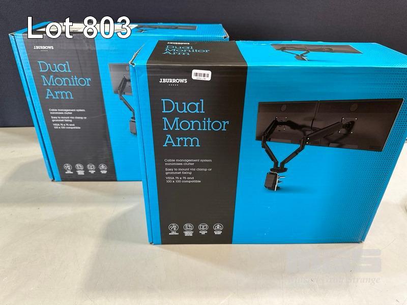 2 x J BURROWS DUAL MONITOR ARMS (SEALED IN BOX)