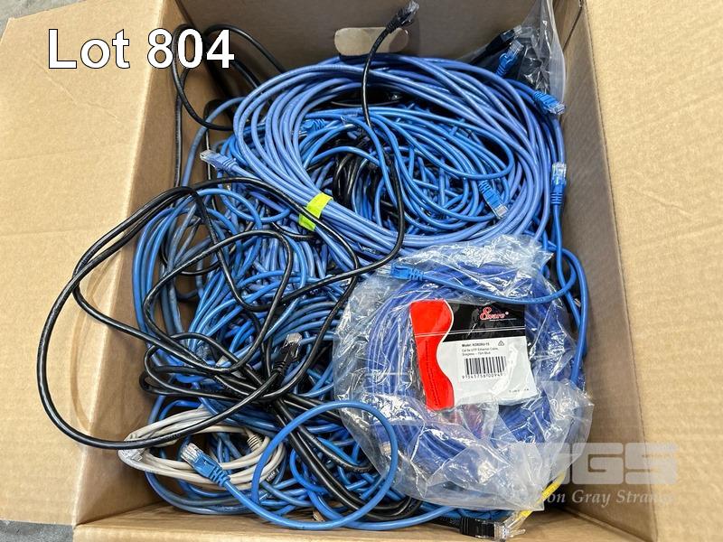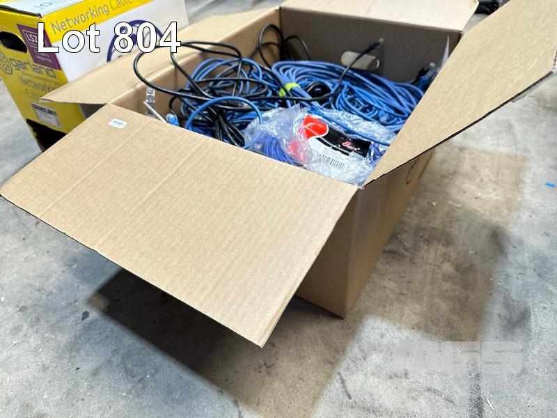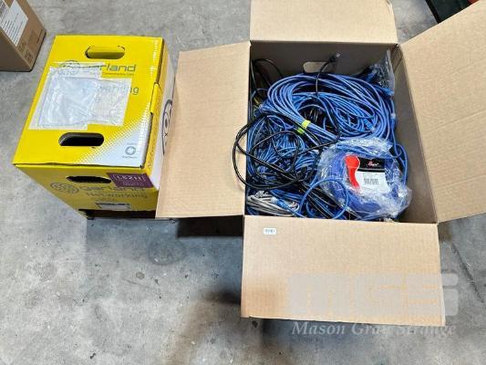 BOX OF ASST CAT5e NETWORK CABLES & PART ROLL CAT6 CABLE