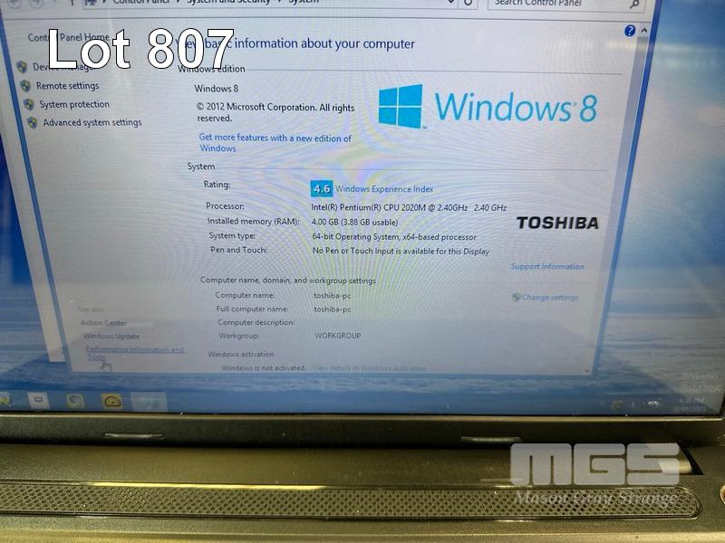 LAPTOP, TOSHIBA SATELLITE C50-A, PENTIUM 2020M @ 2.4GHz, 4GB DDR3 RAM, 500GB SATA HDD, DVD-RW, 15.6" WIDESCREEN (1366x768), Wi-Fi, BLUETOOTH, WINDOWS 8 INSTALLED & POWER SUPPLY S/N:8D189304Q