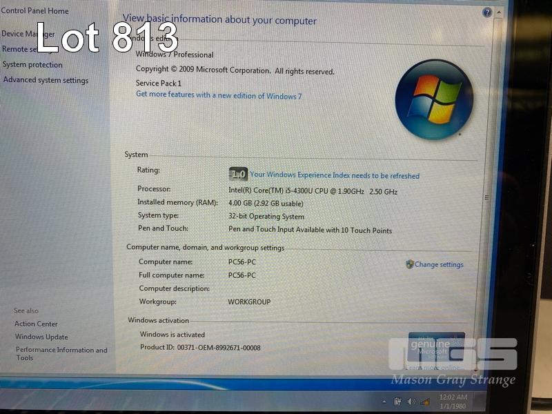 LAPTOP, HP ELITEBOOK REVOLVE 810 G2, CORE i5 4300U (4TH GEN) @ 1.9GHz, 4GB DDR3 RAM, 128GB M.2 SSD, 11.6" TOUCHSCREEN (1366x768), INTEL HD GRAPHICS, Wi-Fi, CELLULAR, BLUETOOTH, WINDOWS 7 PRO INSTALLED & POWER SUPPLY (NOTE: BATTERY NOT CHARGING) S/N:8CG4330NCF