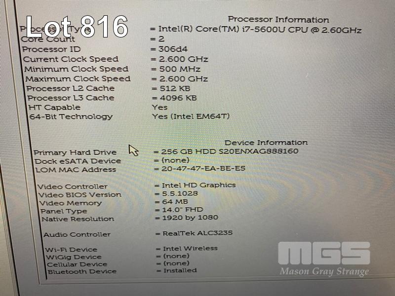 LAPTOP, DELL LATITUDE E7450, CORE i7 5600U (5TH GEN) @ 2.6GHz, 16GB DDR3 RAM, 256GB SSD, 14" WIDESCREEN (1920x1080), INTEL HD VIDEO, Wi-Fi, BLUETOOTH, WINDOWS 10 HOME INSTALLED & POWER SUPPLY (NOTE: TOUCHPAD PEELING) S/N:2FJ3362