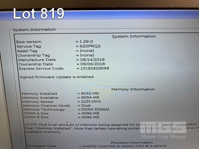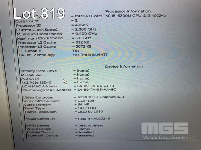 LAPTOP, DELL LATITUDE 5480, CORE i5 6300U (6TH GEN) @ 2.4GHz, 8GB DDR4 RAM, NO HDD, 14" WIDESCREEN (NO POWER SUPPLY) S/N:620PRQ2