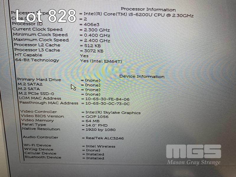 LAPTOP, DELL LATITUDE 5480, CORE i5 6200U (6TH GEN) @ 2.3GHz, 8GB DDR4 RAM, NO HDD, 14" WIDESCREEN (NO POWER SUPPLY) (NOTE: MISSING "ENTER" KEY, MARKS ON SCREEN) S/N:8Q6VZM2