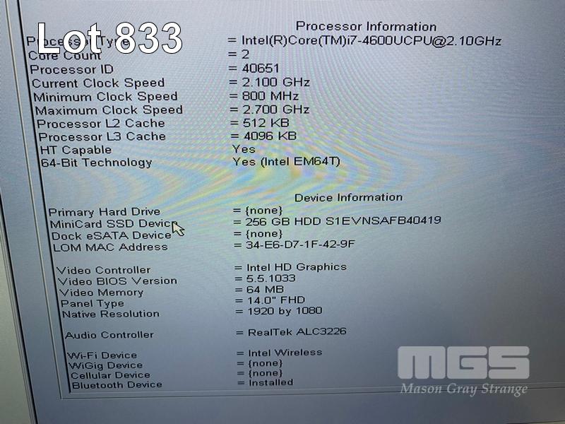 LAPTOP, DELL LATITUDE E7440, CORE i7 4600U (4TH GEN) @ 2.1GHz, 8GB DDR3 RAM, 256GB SSD, 14" WIDESCREEN (1920x1080), INTEL HD VIDEO, Wi-Fi, BLUETOOTH, WINDOWS 10 HOME INSTALLED, DOCKING STATION & POWER SUPPLY S/N:F536Q12