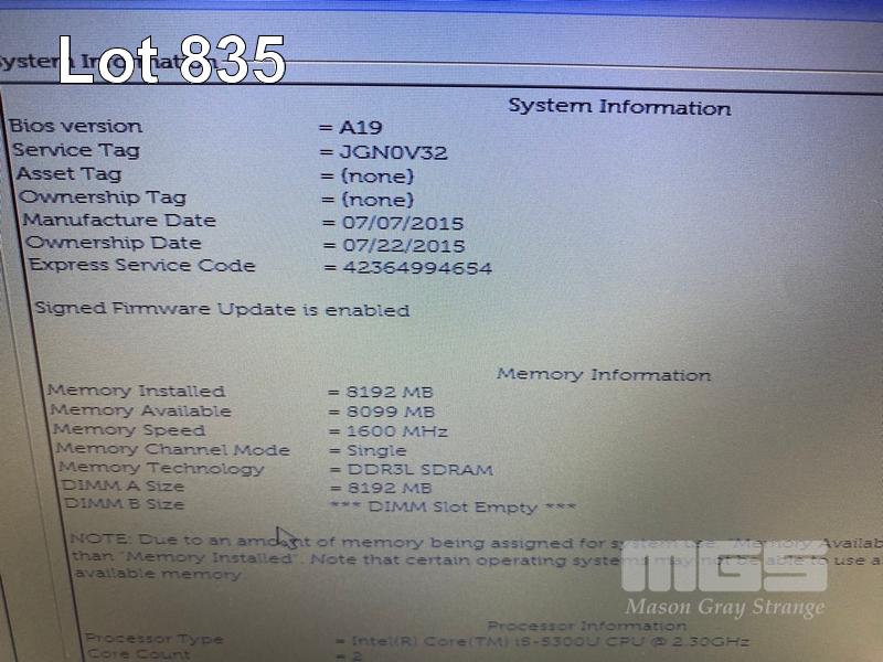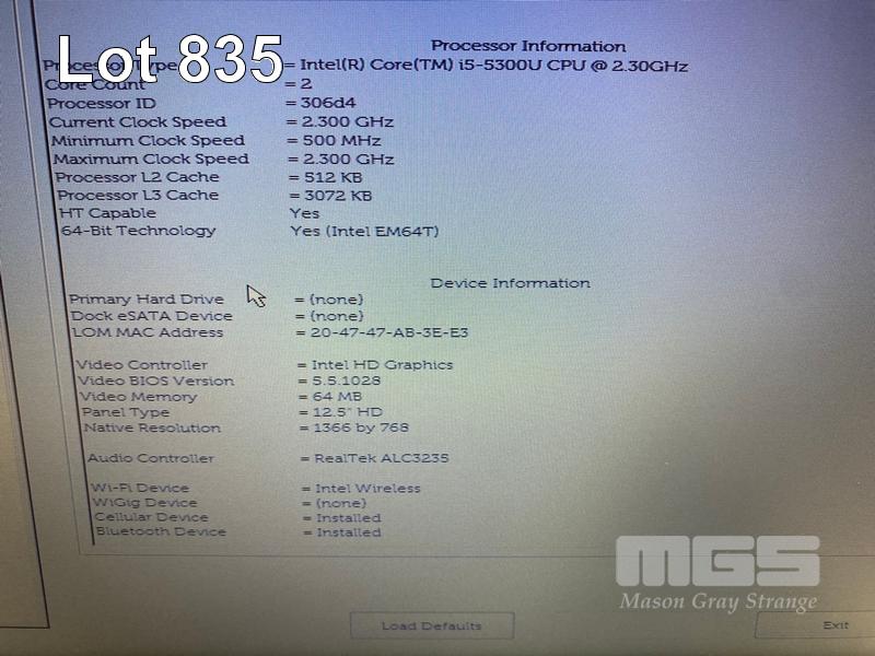 LAPTOP, DELL LATITUDE E7250, CORE i5 5300U (5TH GEN) @ 2.3GHz, 8GB DDR4 RAM, NO HDD, 12.5" WIDESCREEN (1366x768) (NO POWER SUPPLY) (NOTE: BATTERY NOT HOLDING CHARGE, SPOT ON SCREEN) S/N:JGN0V32