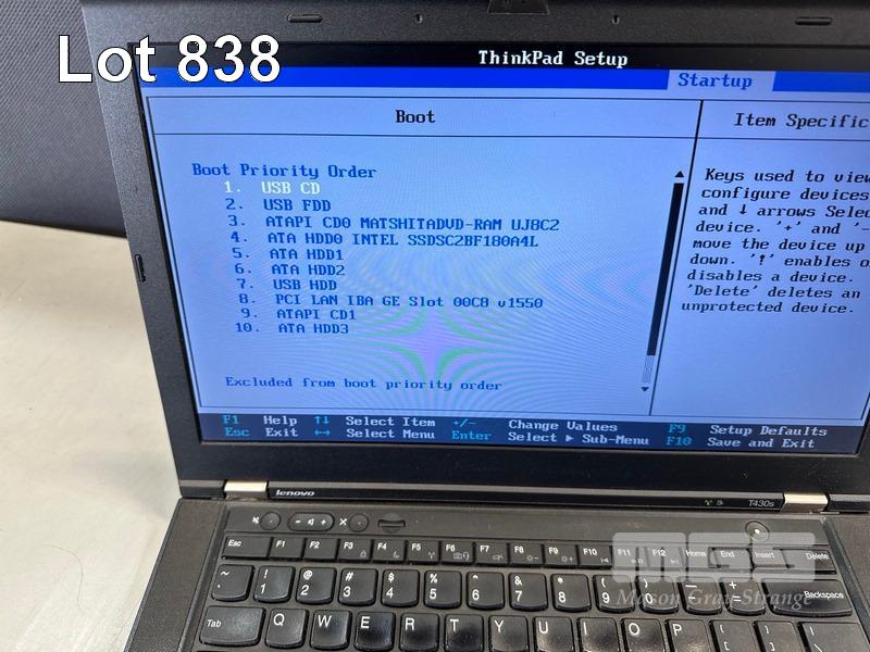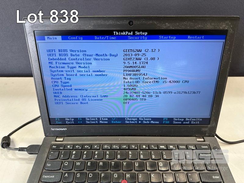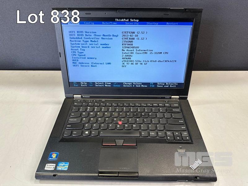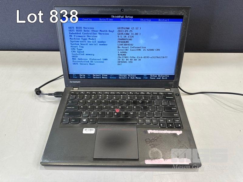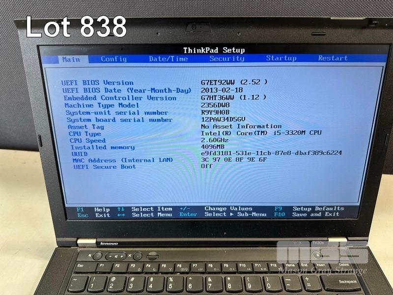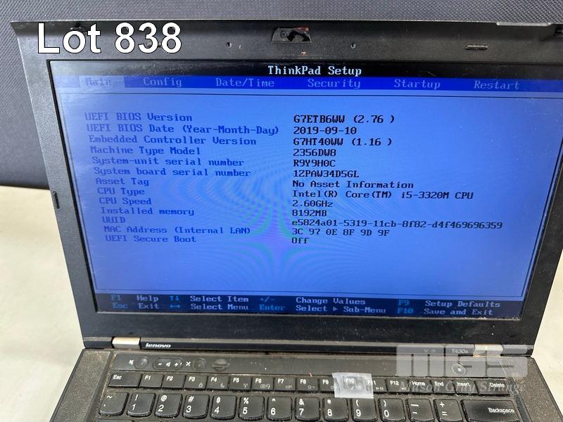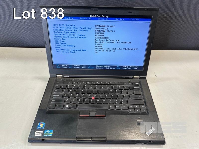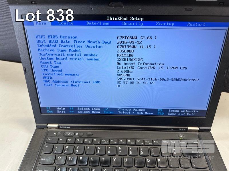 4 x LAPTOPS INC. - LENOVO THINKPAD X240, CORE i5 4200U @ 1.6GHz, 4GB RAM, 128GB SSD (BIOS PASSWORD PROTECTED, DAMAGE TO CASING) - LENOVO THINKPAD T430S, CORE i5 3320M @ 2.6GHz, 8GB RAM, 180GB SSD ("F10" KEY LOOSE, NO BATTERY) - LENOVO THINKPAD T430S, CORE i5 3320M @ 2.6GHz, 4GB RAM, 180GB SSD - LENOVO THINKPAD T430S, CORE i5 3320M @ 2.6GHz, 4GB RAM, 180GB SSD WITH POWER SUPPLIES S/N:PF00BUMY, R9Y9H0C, PK1TLD0, R9Y9H0B