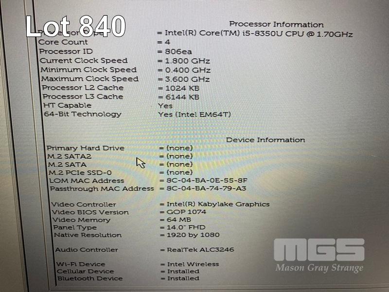 8 x LAPTOPS INC. - DELL LATITUDE E7240, CORE i3 4010U @ 1.7GHz, 8GB RAM, NO HDD (NO BATTERY, VERY POOR CONDITION) - DELL LATITUDE 7490, CORE i5 8250U @ 1.6GHz, 8GB RAM, NO HDD (SWOLLEN BATTERY) - DELL LATITUDE 5490, CORE i5 8350U @ 1.7GHz, 8GB RAM, NO HDD (NO BATTERY) - DELL LATITUDE 5480, CORE i5 6300U @ 2.4GHz, 8GB RAM, 256GB HDD (NO BATTERY) - DELL LATITUDE 5480, CORE i5 6300U @ 2.4GHz, 8GB RAM, NO HDD (NO SPACE BAR, NO BATTERY) - DELL LATITUDE 5490, 8GB RAM, NO HDD (FAULTY) - DELL LATITUDE 5490, 16GB RAM, NO HDD (FAULTY) - DELL LATITUDE E7440, NO RAM, NO HDD (FAULTY) (NO POWER SUPPLIES) S/N:9YHFVZ1, 4GJ8LQ2, FMFP1X2, 2GBL4Q2, 8HGRQN2, 22GV5S2, 3KMV5S2, DNMZP12