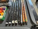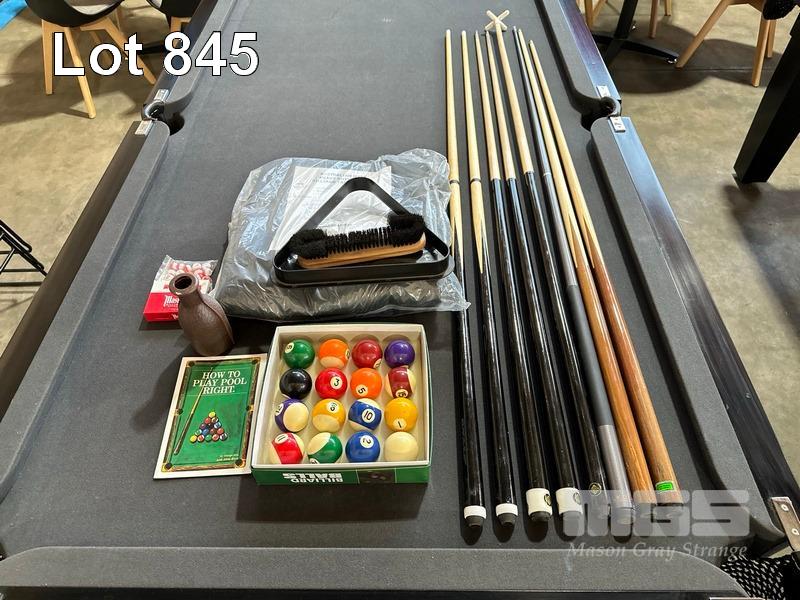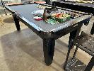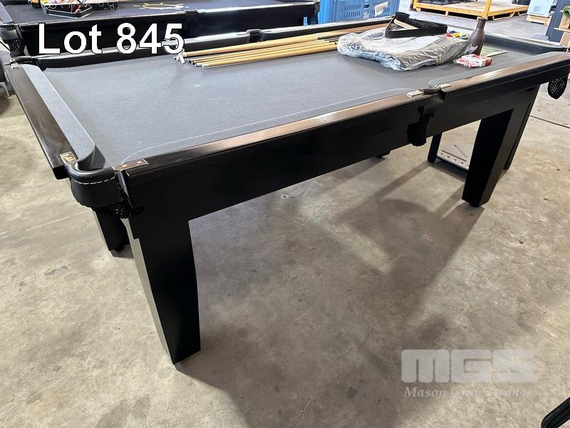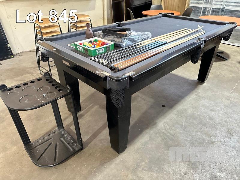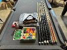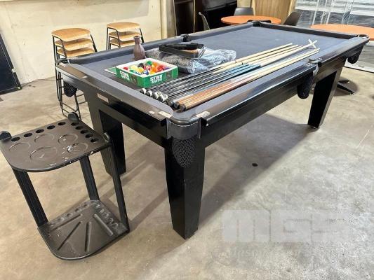 CUE POWER BILLIARDS 7' CONTEMPORARY POOL TABLE, 225 x 119cm WITH CUES, BALLS, VINYL COVER, KELLY POOL & CUE RACK