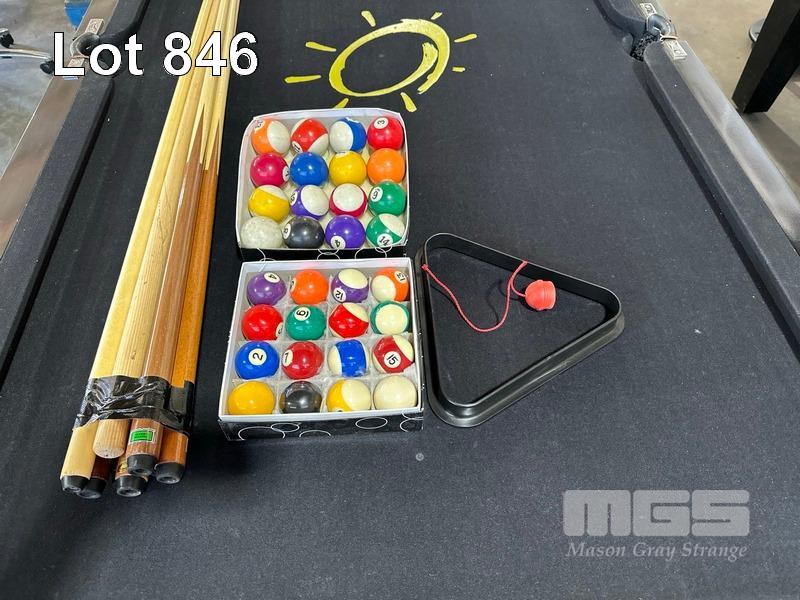 CUE POWER BILLIARDS 7' CONTEMPORARY POOL TABLE, 225 x 119cm WITH CUES & BALLS