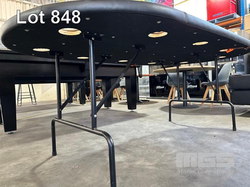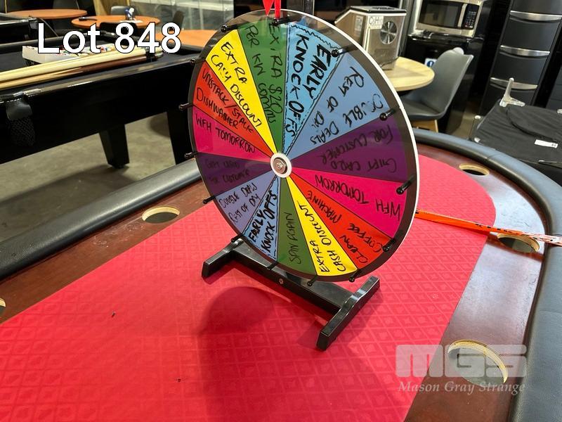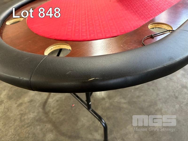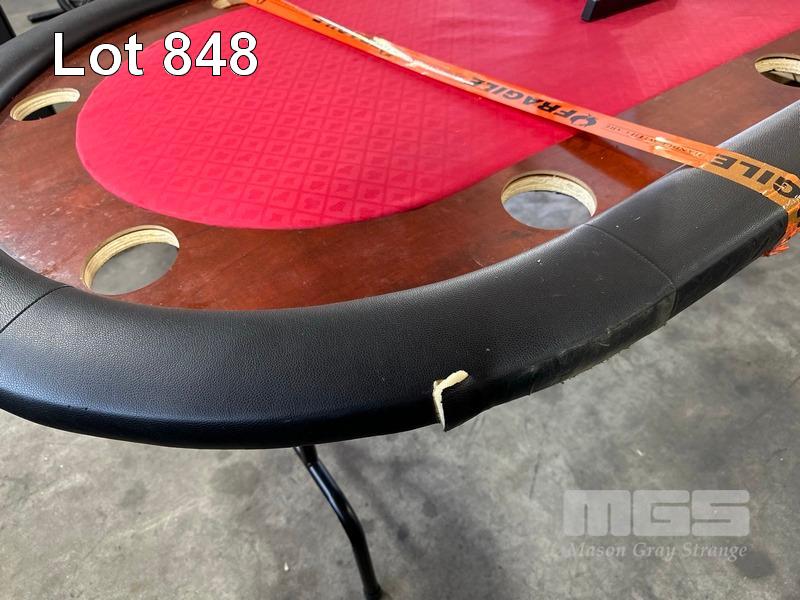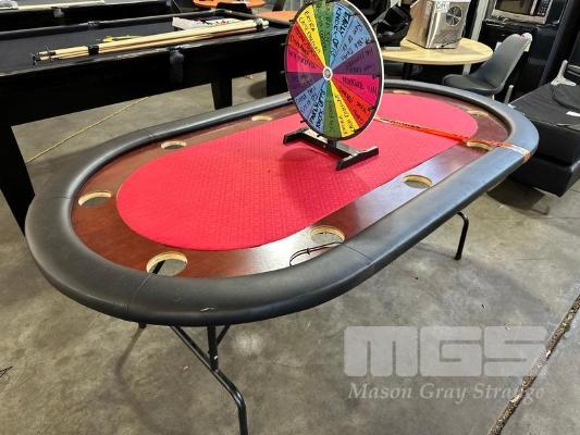 POKER TABLE, 210 x 110cm (NOTE: DAMAGED, NO CUP HOLDERS) 18 INCH TABLE TOP SPINNING PRIZE WHEEL