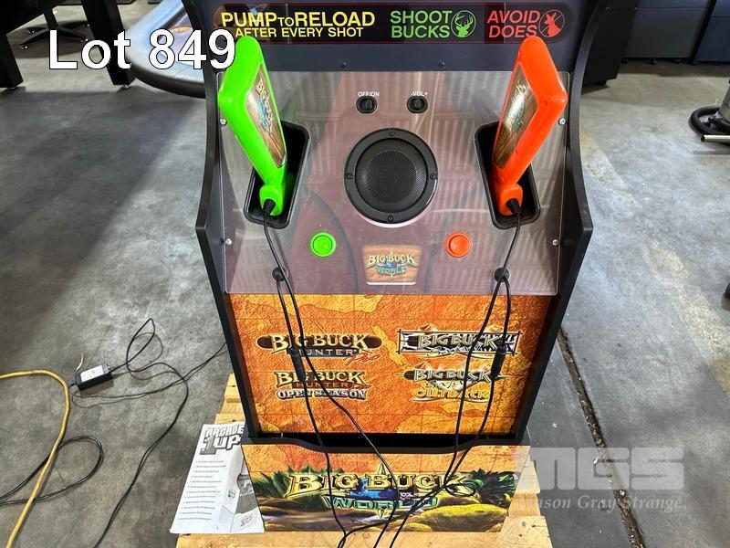 BIG BUCK WORLD ARCADE 1 UP WITH RISER, MODEL 8289 S/N:ESBAC-1120-008454