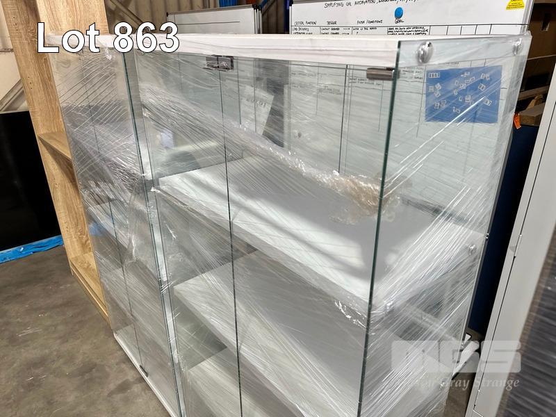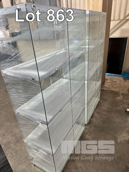2 x TEMPERED GLASS DISPLAY CABINETS, EACH 162 x 80 x 40cm