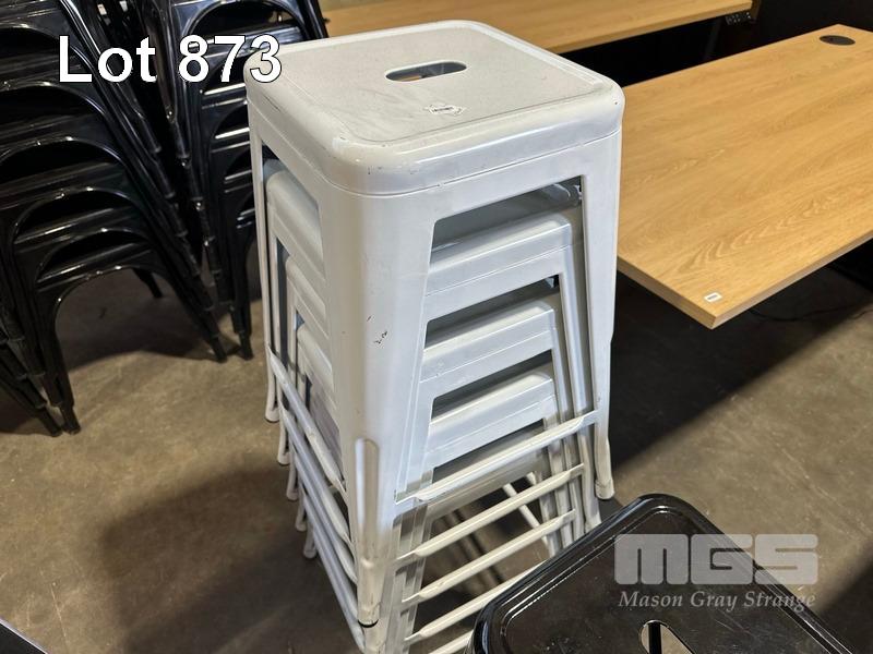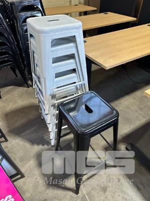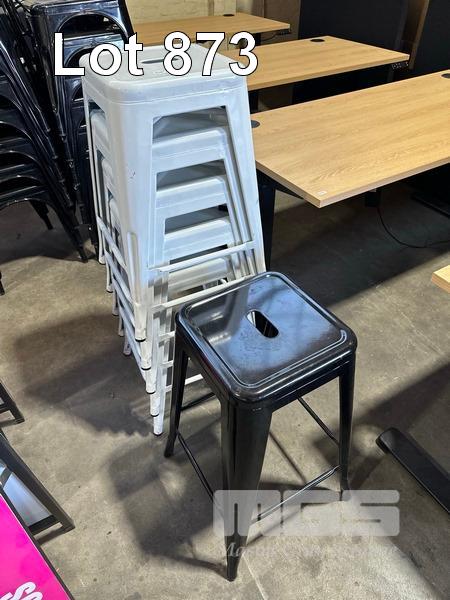 5 x BAR STOOLS, WHITE STEEL 1 x BAR STOOL, BLACK STEEL