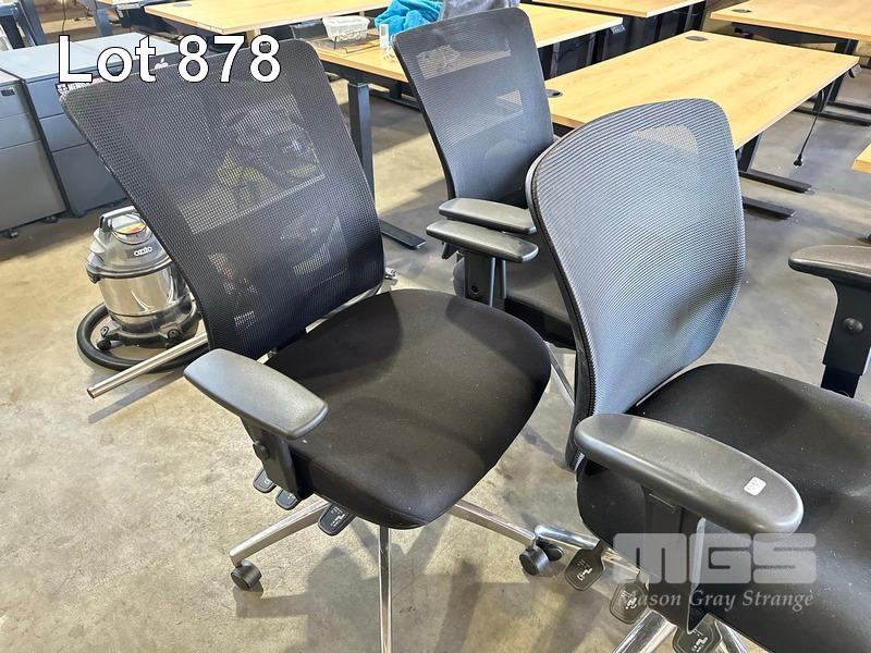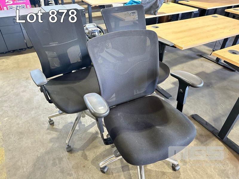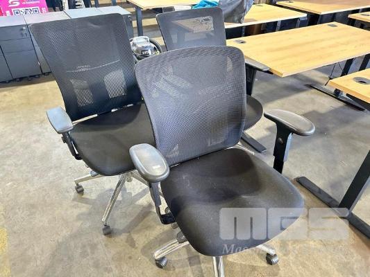 3 x ASSORTED OFFICE ARM CHAIRS, BLACK FABRIC, MESH BACK