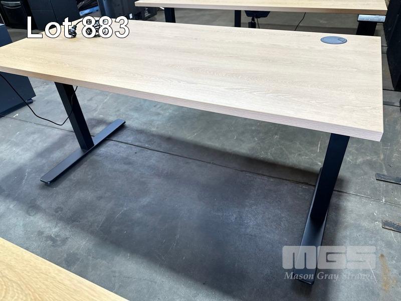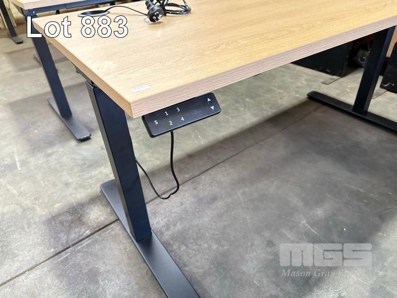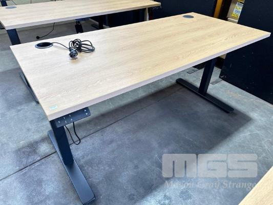 ELECTRIC HEIGHT ADJUSTABLE OFFICE DESK, OAK LAMINATE TOP, BLACK STEEL FRAME, 150 x 70cm