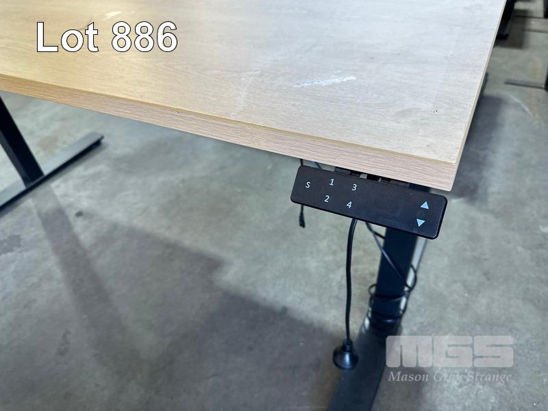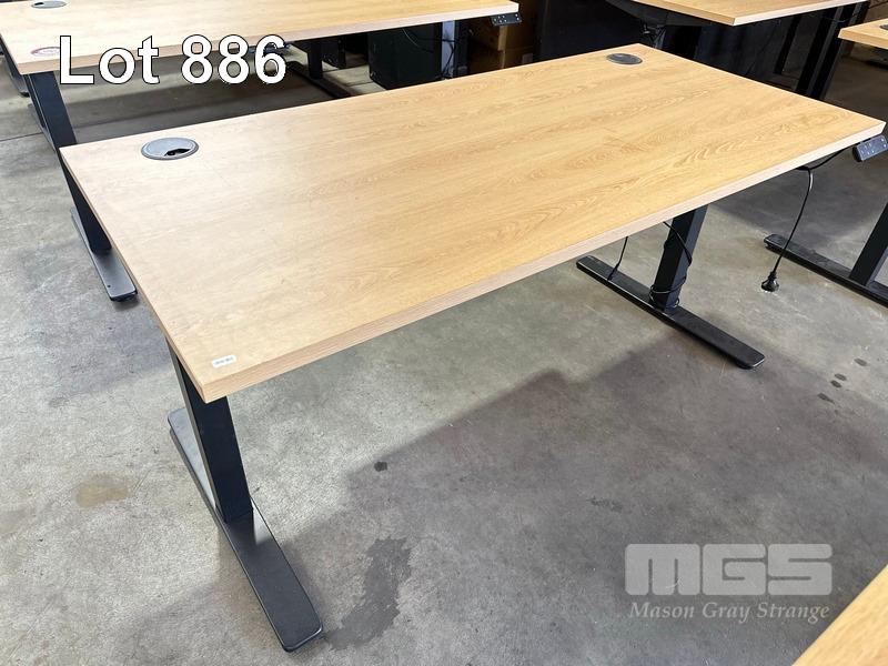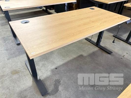 ELECTRIC HEIGHT ADJUSTABLE OFFICE DESK, OAK LAMINATE TOP, BLACK STEEL FRAME, 150 x 70cm