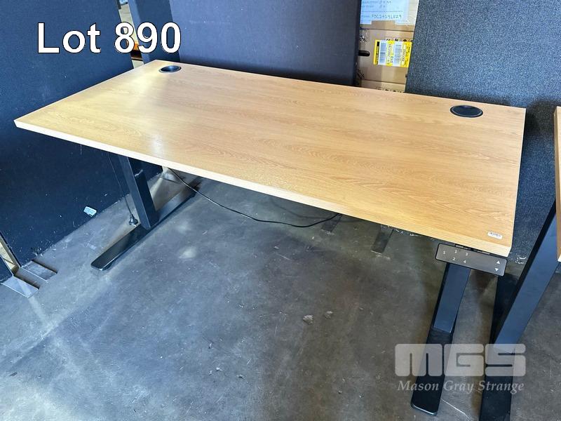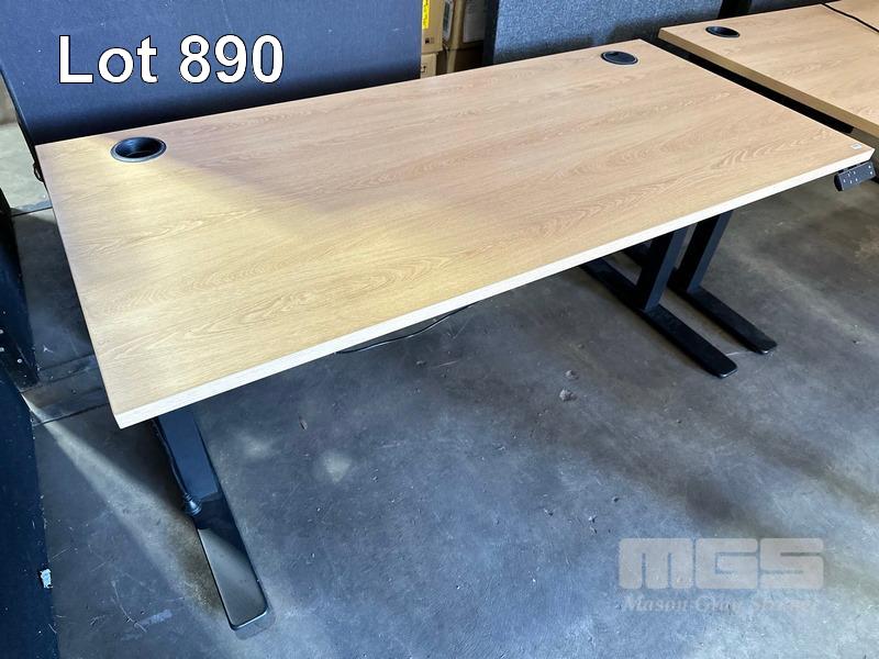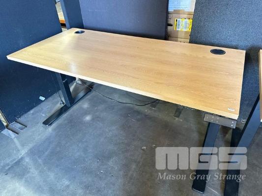 ELECTRIC HEIGHT ADJUSTABLE OFFICE DESK, OAK LAMINATE TOP, BLACK STEEL FRAME, 150 x 70cm
