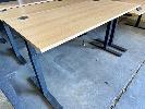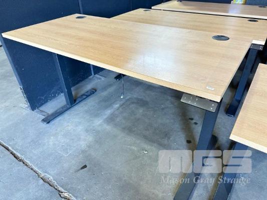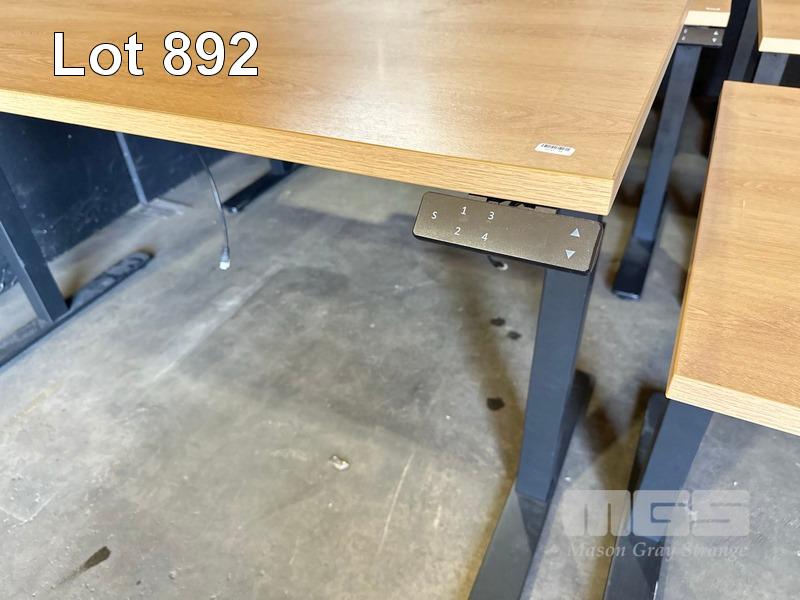 ELECTRIC HEIGHT ADJUSTABLE OFFICE DESK, OAK LAMINATE TOP, BLACK STEEL FRAME, 150 x 70cm