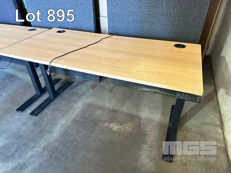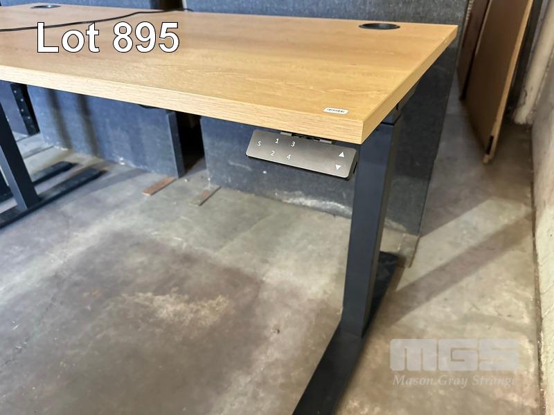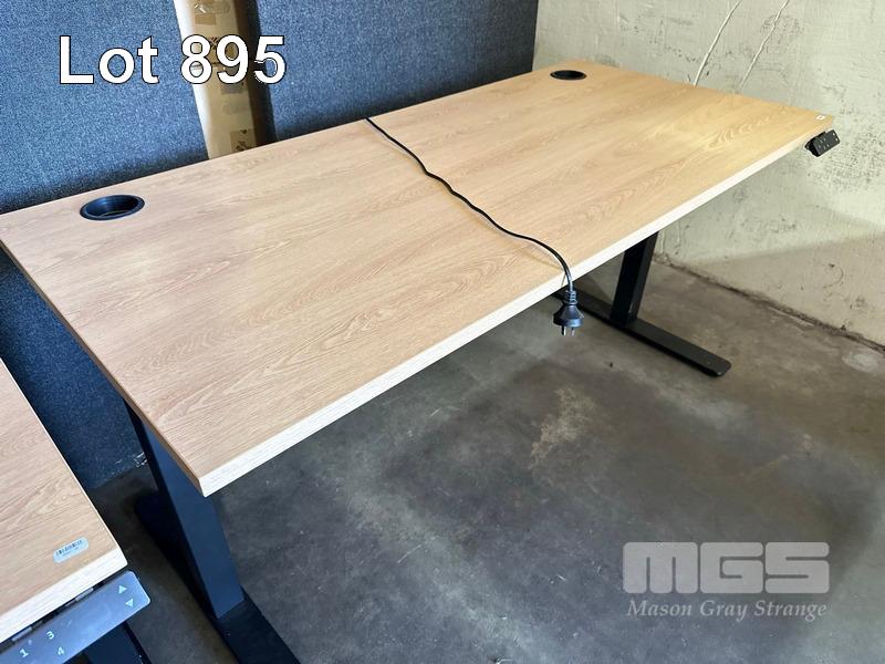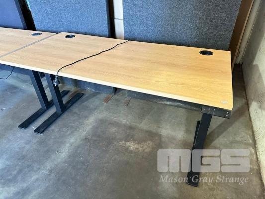 ELECTRIC HEIGHT ADJUSTABLE OFFICE DESK, OAK LAMINATE TOP, BLACK STEEL FRAME, 150 x 70cm