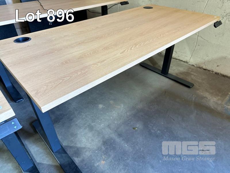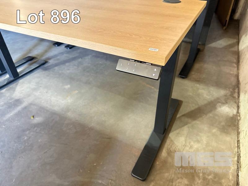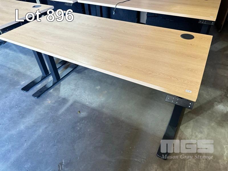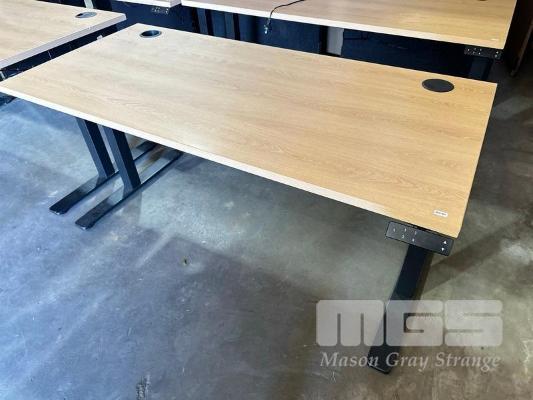 ELECTRIC HEIGHT ADJUSTABLE OFFICE DESK, OAK LAMINATE TOP, BLACK STEEL FRAME, 150 x 70cm