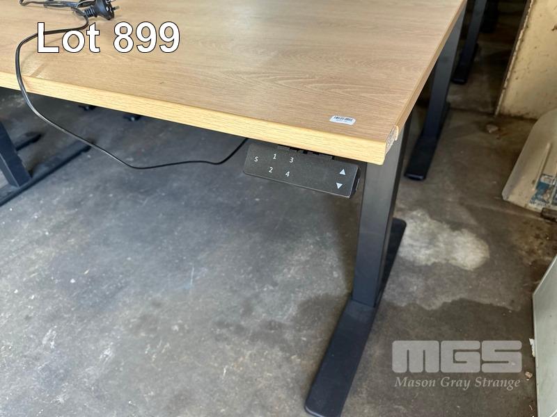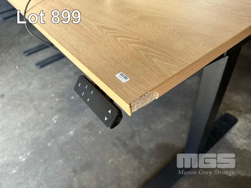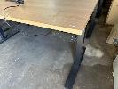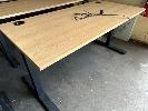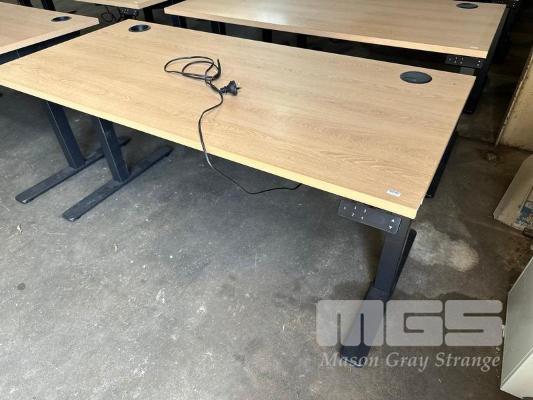 ELECTRIC HEIGHT ADJUSTABLE OFFICE DESK, OAK LAMINATE TOP, BLACK STEEL FRAME, 150 x 70cm (NOTE: MINOR DAMAGE)