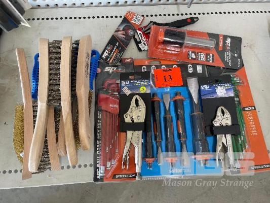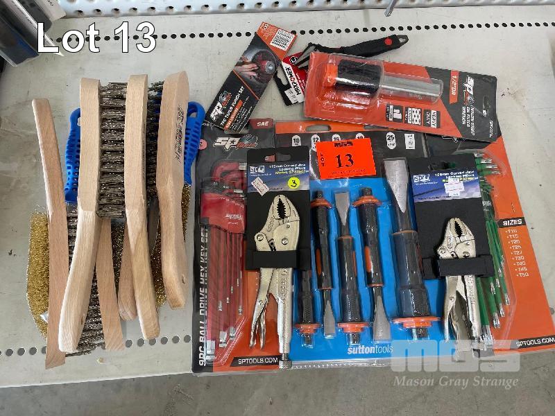 SUTTON CHISEL SET, LOCK PLIERS, ALLEN & TORX SET, WIRE BRUSHES, ETC