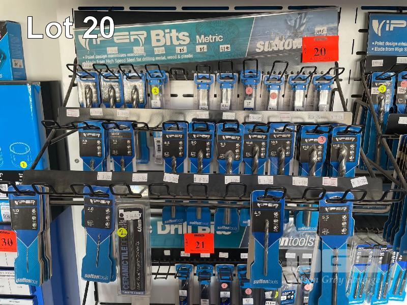 SUTTON VIPER IMPERIAL HSS DRILL BIT RACK & DRILLS, 1-17mm (NOTE SEE PHOTOS FOR QUANTITY)
