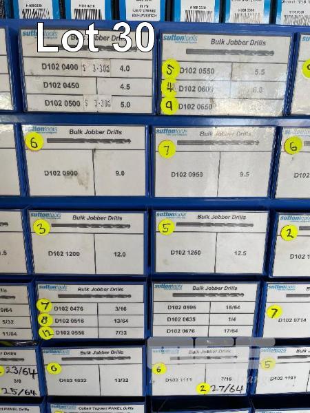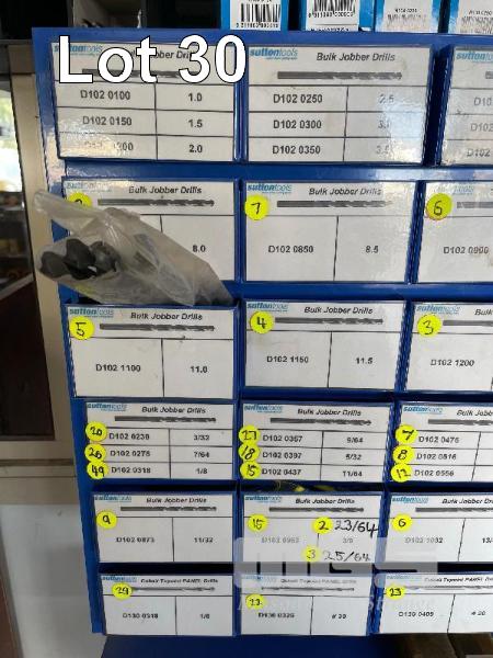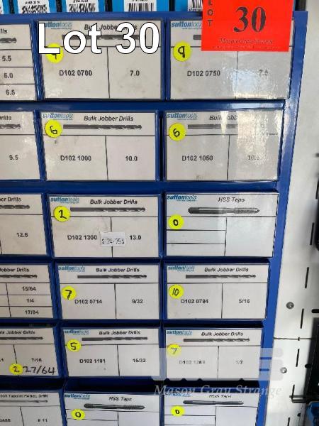 SUTTON JOBBER DRILL DRAWER UNIT, 1-13mm, 3/32-1/2" & PANEL DRILLS, TAPS, ETC 200+ ITEMS