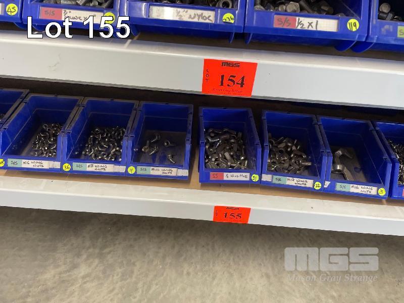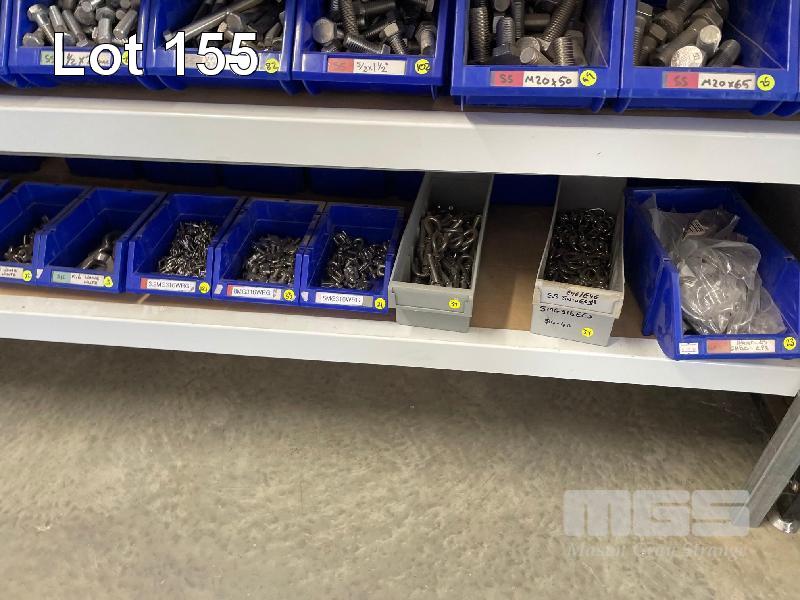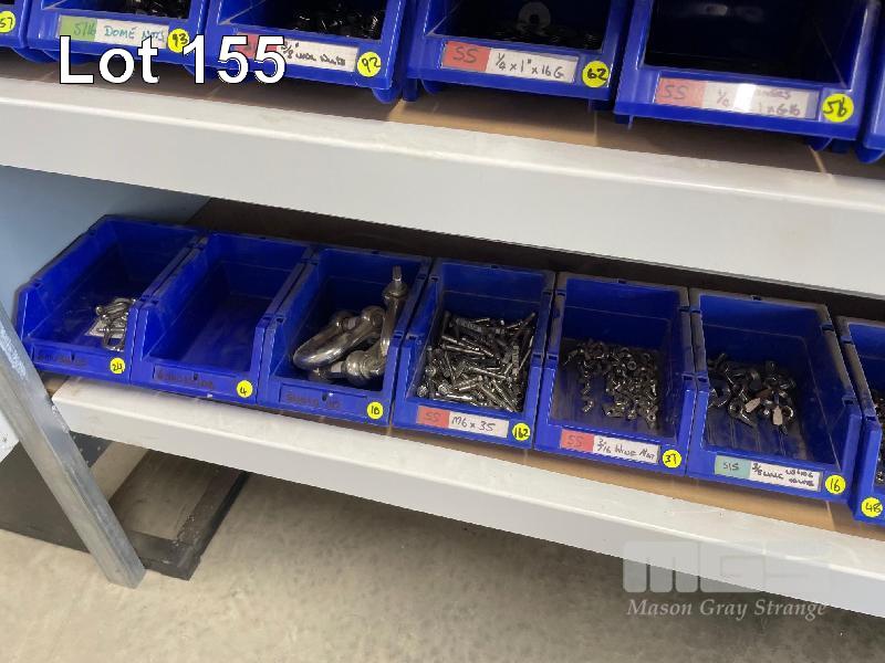 STAINLESS STEEL WING NUTS, CLAMPS, D-SHACKLES, EYE BOLTS, ETC 1 x SHELF, 17 x TUBS