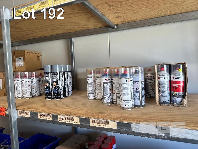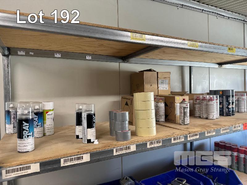 TAPES, AEROSOL PAINTS, PRIMBERS, WURTH ULTRA 2040 & LACQUERS 1 x SHELF