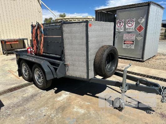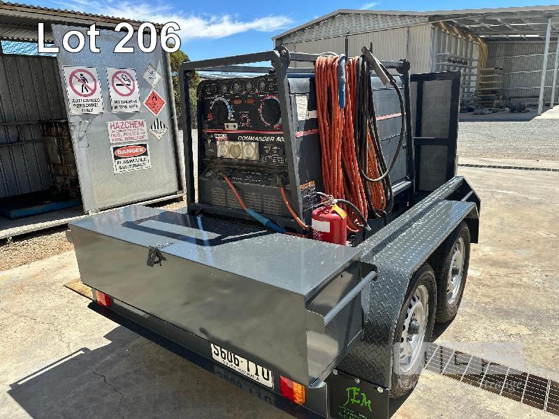 MOBILE WELDING UNIT, BRAND NEW DUAL AXLE TRAILER, 7x3' DOM: 12/2024 REG: S606 TIO VIN: 6T9T2000SRA6S4004 50mm COUPLER BRAKES ATM: 2100kg SPARE WHEEL FRONT ENCLOSURE LED LIGHTS, TOOL BOX GAS BOTTLE HOLDER, FIRE EXTINGUISHER, WITH LINCOLN COMMADER 500 WELDER GENERATOR MOD: K1846-2 HOURS: 855.9 DRO, VOLT/AMPS, KEY START, DIESEL, INCLUDES WELDING LEADS, OXY SET, DIE GRIDNER, HAMMER DRILL & ANGLE GRINDER