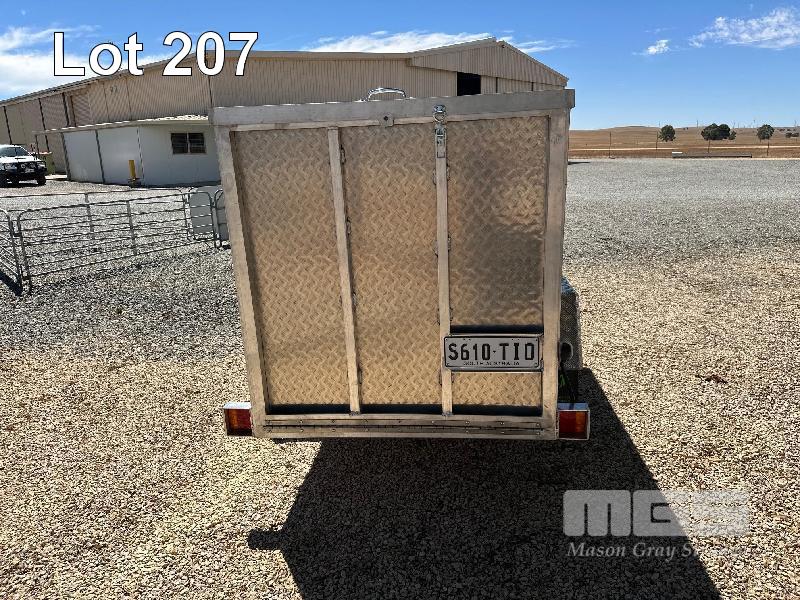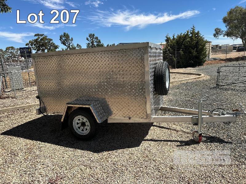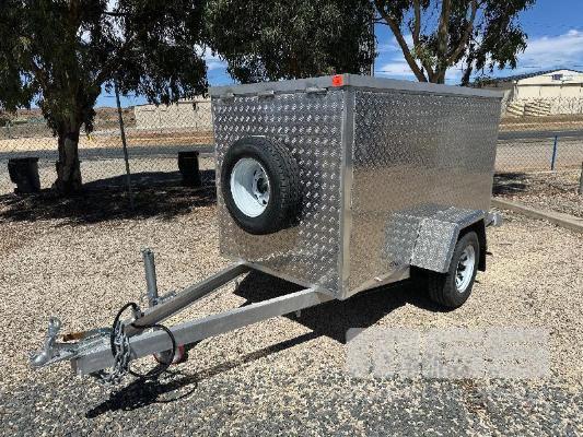 2024 ENCLOSED ALUMINIUM MOTORCYCLE/ATV TRAILER, JTE REG: S610 TIO 7 x 4', SINGLE AXLE ELECTRIC BRAKES, LED LIGHTS, SWING UP JOCKEY WHEEL KATCH UP REAR RAMP, GAS STRUT ENCLOSED CANOPY 6 STUD, 14" RIMS AS NEW