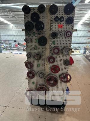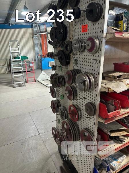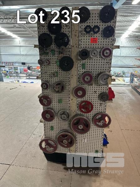 SHADOW BOARD OF ASSORTED CAST PULLEYS, 1-9"