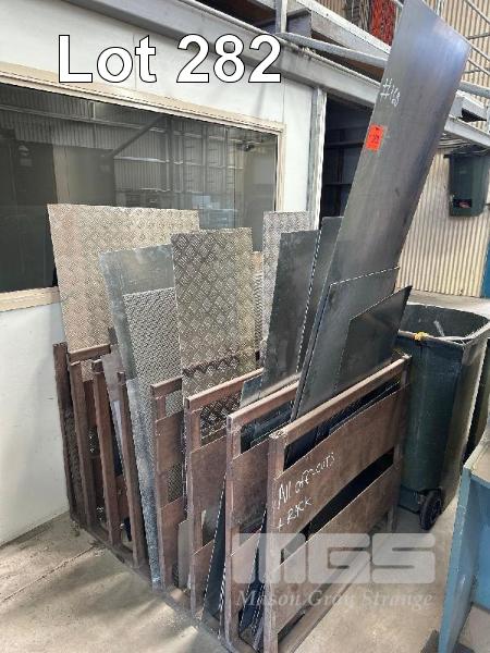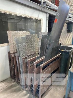 OFFCUTS RACK & CONTENTS STEEL & ALUMINIUM SHEET, GALV, TREAD PLATE, BLACK SHEET, ETC