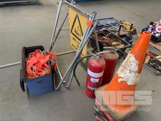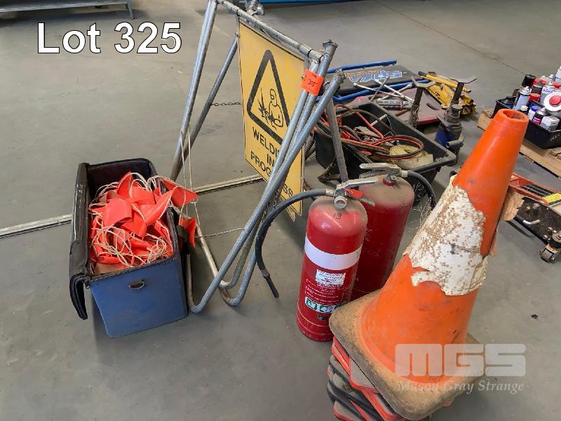 SAFETY CONES, 2 x FIRE EXTINGUISHERS, 9.0kg POWDER, BUNTING & TIE DOWN STRAPS