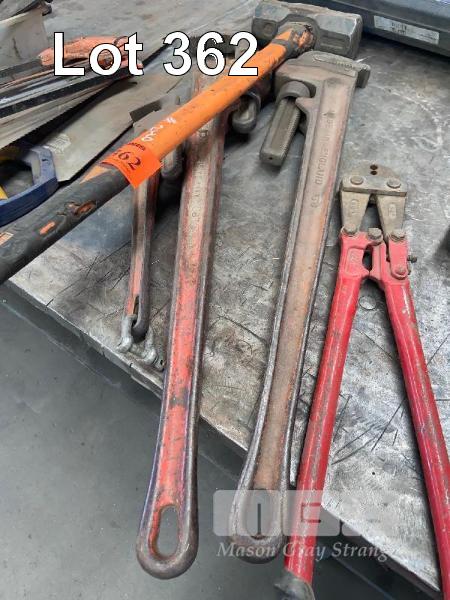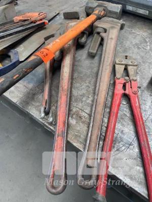 3 x STILSONS, 1 @ 18" & 2 @ 35", SLEDGEHAMEMR & LUG CLAMP, 24"