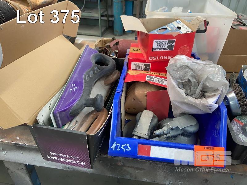 ASSORTED AIR TOOLS, ORBITAL SANDER, HAND SANDERS, DISCS & PAPER