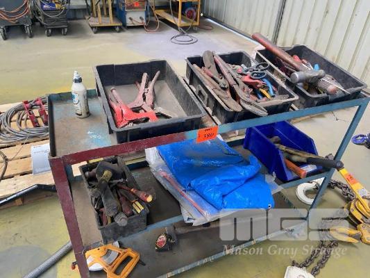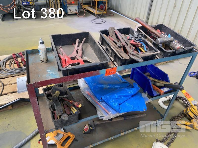 TROLLEY, 2 TIER & TOOLS INCLUDING PLIERS, MALLETS, GRIPS, ETC