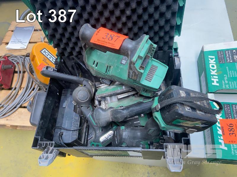 HITACHI CORDLESS TOOLS INCLUDING SAW DRILL, HAMMER DRILL TORCH & CHARGER, 18V