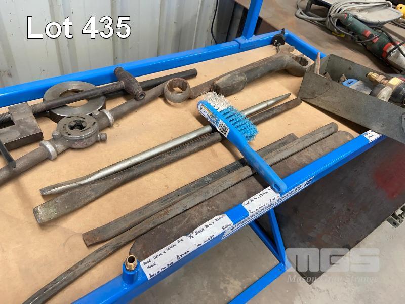ASSORTED DIE STOCKS, TAPS, PIPE CUTTER, PRY BARS, SLOG SPANNERS, ETC