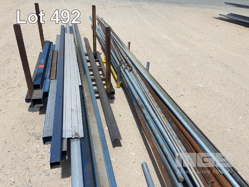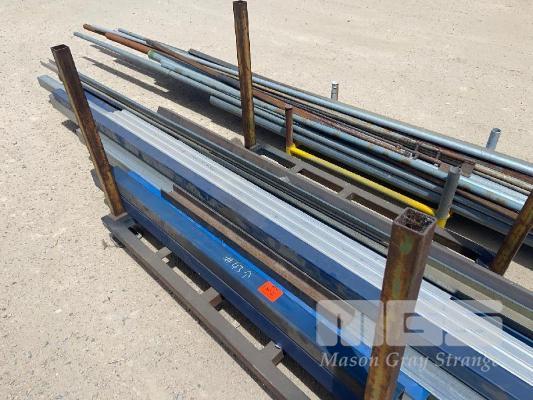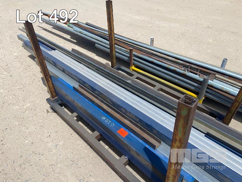 2 x STILLAGES & CONTENTS ASSORTED GALV & BLACK STEEL PIPE UP TO 50mm, 25 (APPROX) x PIECES VARIOUS SHS, ANGLE & CHANNEL
