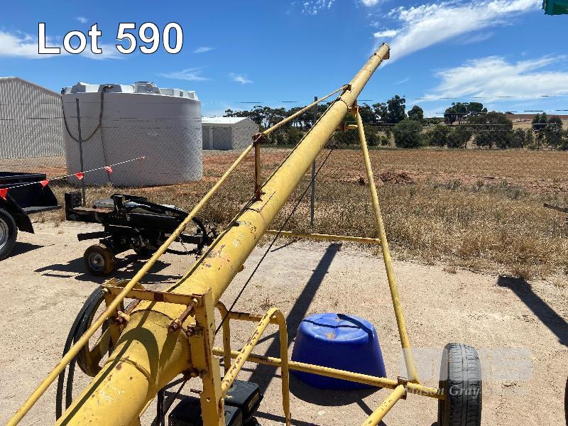 GRAIN AUGER 150mm x 12m APPROX PARAMOUNT, 6.5HP PETROL ENGINE, CABLE WINCH
