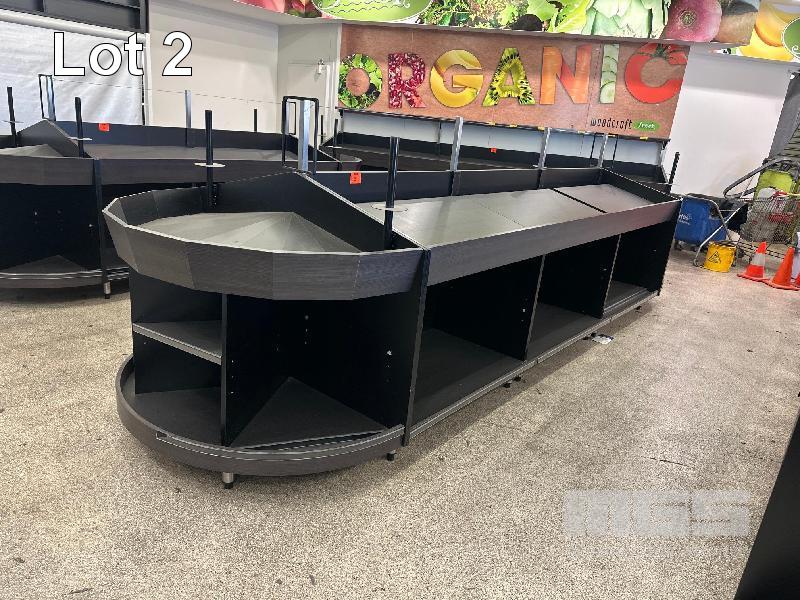 PRODUCE ISLAND DISPLAY, DARK TIMBER LAMINATE 5100 x 1500 x 1200mm (H)