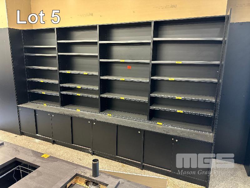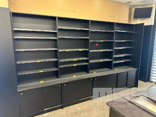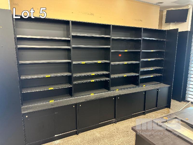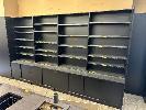 PRODUCE DISPLAY SHELVING, WALL MOUNT, BLACK TIMBER LAMINATE 4000 x 600 x 2400mm (H)